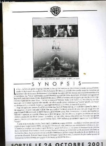 Descriptions Brochure de presse du film " a.i. intelligence artificielle " avec haley joel osment et jude law. gratuitment